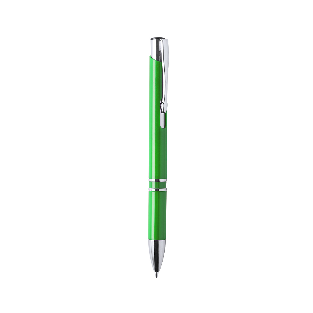 Penna a sfera con fusto dai colori vivaci. Dettagli cromati e intaccatura originale sul fusto. Meccanismo a pulsante, con cartuccia jumbo e inchiostro blu.