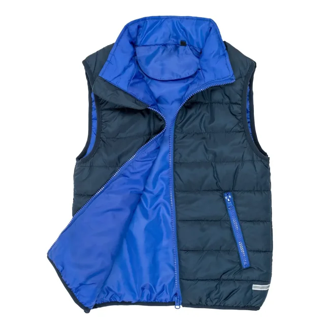 Esterno, interno e fodera 100% poliestere. Bodywarmer, fodera e zip in colore a contrasto, zip frontale, dettaglio riflettente sul fianco, orlo su polsini, tasche con zip, leggero e caldo, facile da comprimere. XL= 11/12 anni, XXL= 13/14 anni