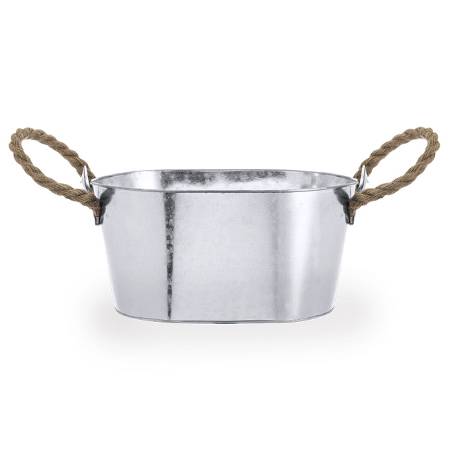 Fantastico secchio in metallo da 6 L per la conservazione di bevande fredde. Perfetta fusione di stile e utilità, con aperture fisse alle estremità e grande capacità. Design robusto con manici in corda per un facile trasporto.