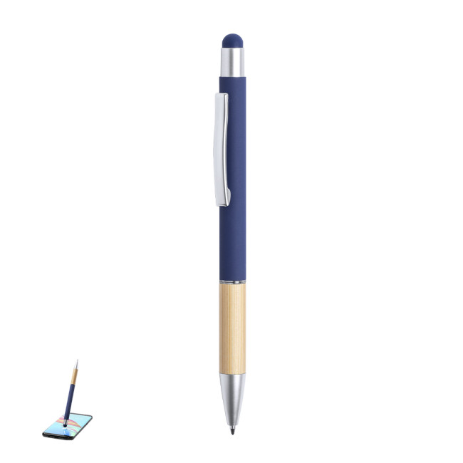 Penna della Linea Natura con meccanismo a pulsante. Design elegante con fusto in alluminio opaco e impugNatura in bambù, con dettagli opachi. Clip di metallo e anello trasparente, inchiostro blu. Disponibile in una vasta gamma di colori.