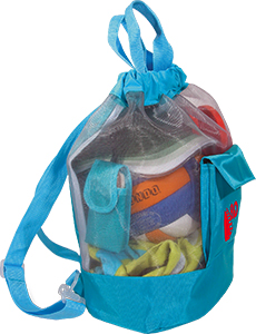 Zainetto spiaggia trasparente retinato finiture azzurre