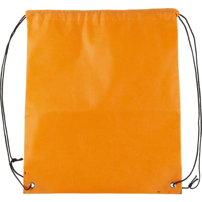 Zaino a sacca, chiusura a coulisse, angoli in PVC, cordoncini collegati mediante anelli metallici, in TNT 80 gr/m²