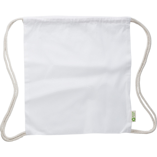 Zaino a sacca in cotone riciclato, chiusura a coulisse, tinta unita, cordoni e angoli rinforzati, realizzato da cotone 100% riciclato