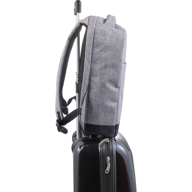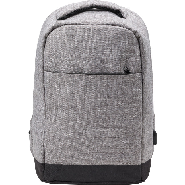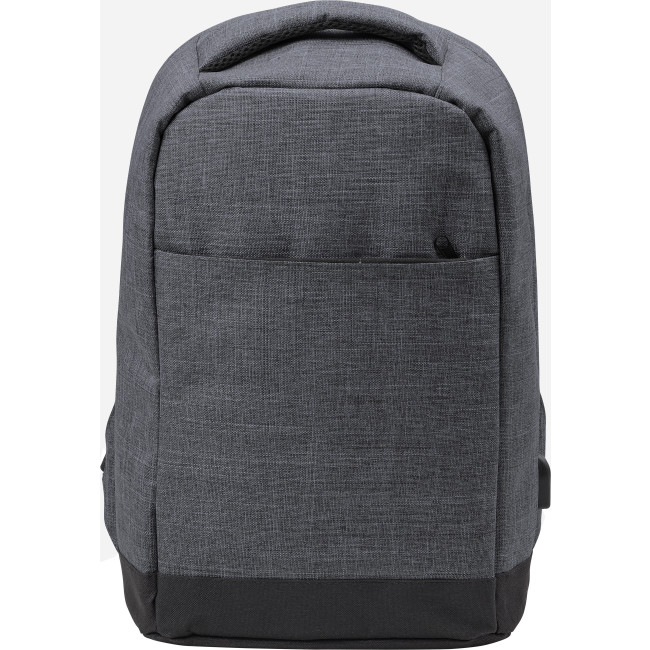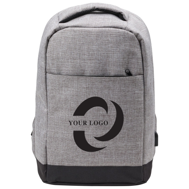 Zaino antitaccheggio bicolore con supporto in PVC, scomparto per computer portatile da 13 pollici, vari vani interni di cui una con chiusura lampo, tasca esterna con chiusura lampo sul retro, sul lato porta USB con cavo all'interno, in poliestere 600 D