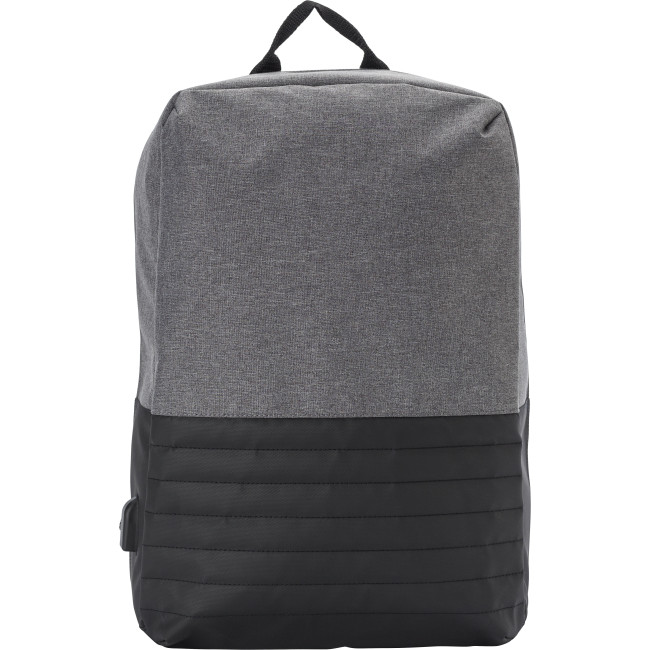 Zaino antitaccheggio bicolore, scomparto principale con chiusura lampo per computer portatile da 15 pollici, spallacci regolabili e schienale imbottiti, vari vani interni, sul lato porta USB con cavo interno, in poliestere 600/300 D e in PVC