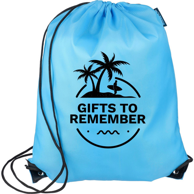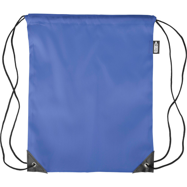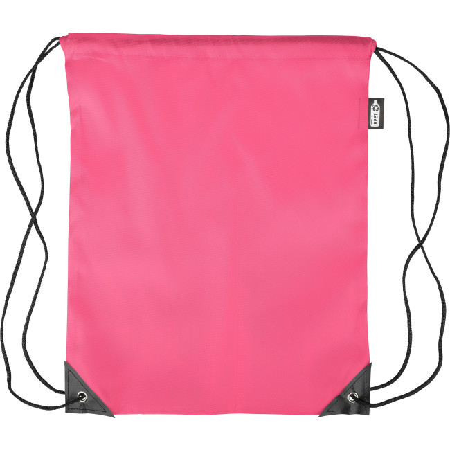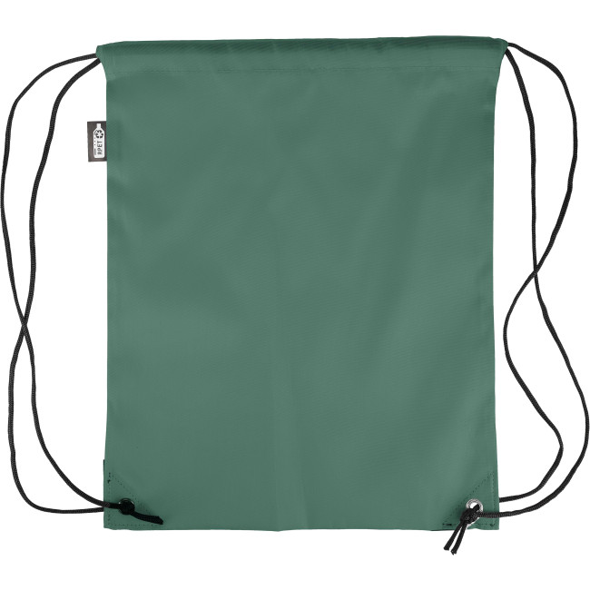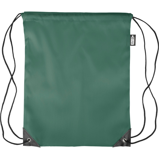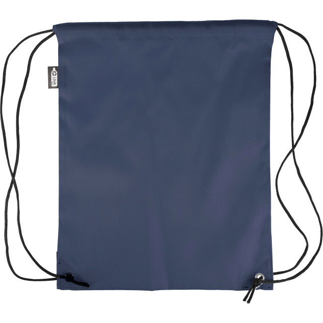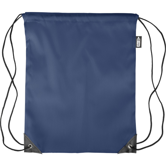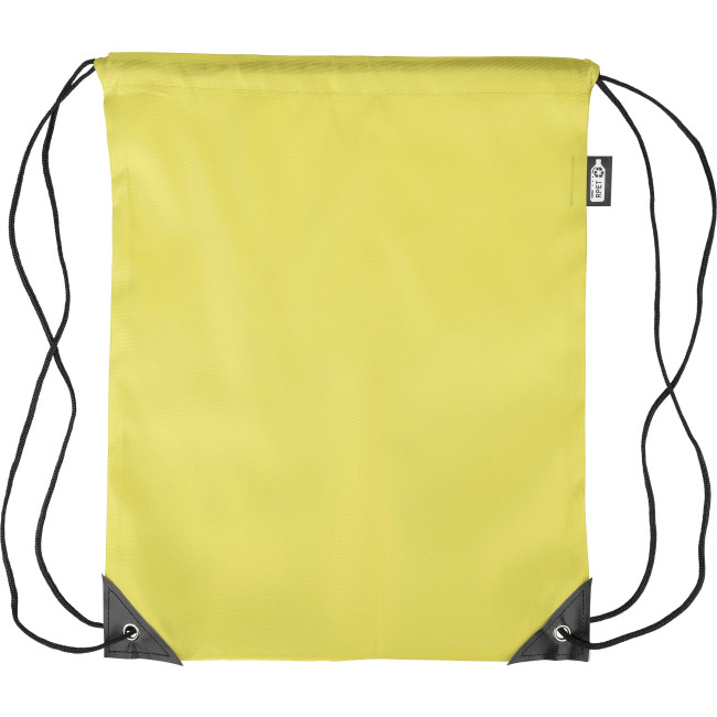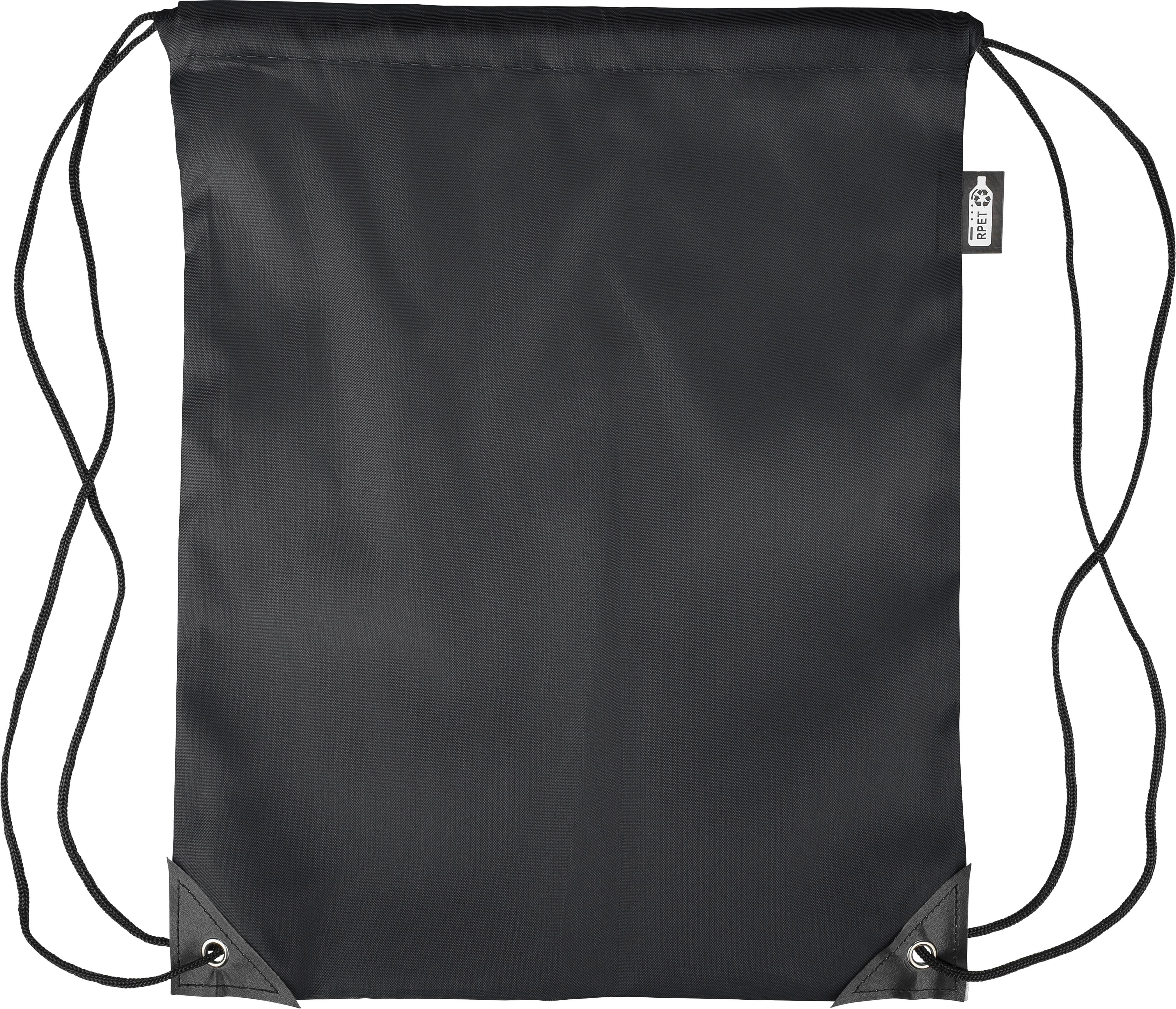 Zaino con chiusura a coulisse in poliestere rPET 210D con due angoli in PU neri sul davanti e cuciture interne. Presenta un cordino in nylon nero su ogni lato, una chiusura a cordino. Capacità: 5 l. Capacità di trasporto: 7 kg. Include etichetta rPET.