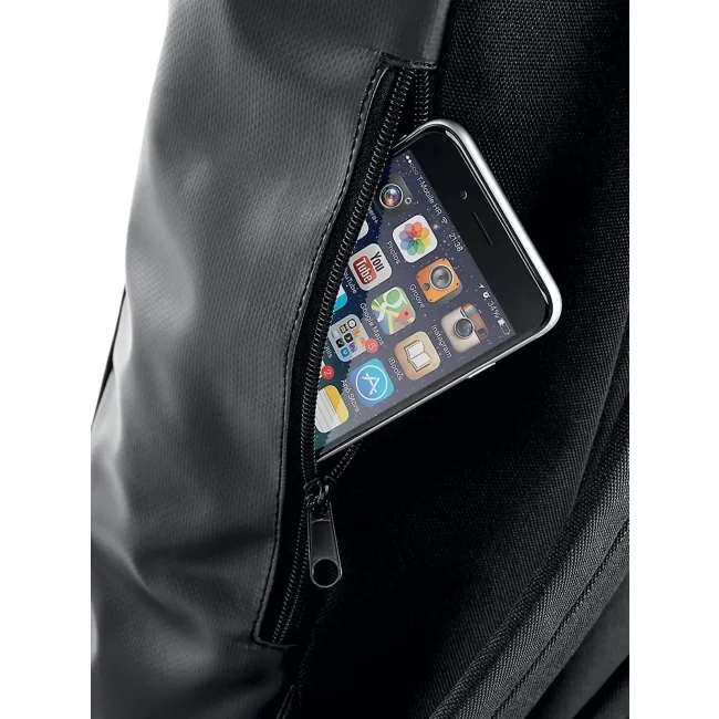 Zaino impermeabile realizzato in 100% PVC Tarpaulina, dotato di chiusura avvolgibile e tasca nascosta con cerniera. Le spalline imbottite e regolabili garantiscono comfort durante il trasporto. Le dimensioni sono 26 x 43 x 13 cm, con una capacità di 15 litri e un'area di stampa di 20 x 14 cm.