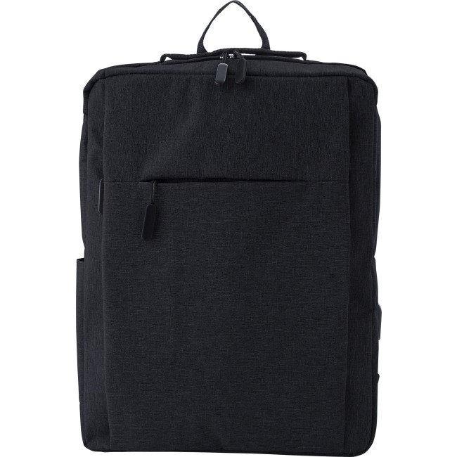 Zaino, adatto per computer portatile da 15 pollici, scomparto principale, tasca frontale, chiusura lampo, con uscita USB laterale, spallacci imbottiti regolabili, in poliestere 600 D