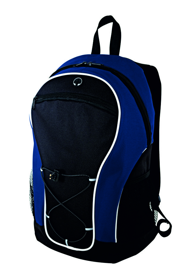 Zaino tasca frontale e chiusura superiore con zip. Uscita per cuffie.