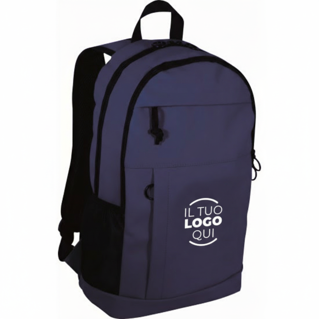 Zaino porta pc realizzato in PU SOFT, con dimensioni di 29,5x46x14 cm. Include 2 tasche laterali in mesh e 2 tasche frontali per un facile accesso agli oggetti. Lo schienale imbottito e gli spallacci garantiscono un comfort ottimale durante il trasporto. Personalizzabile con logo.