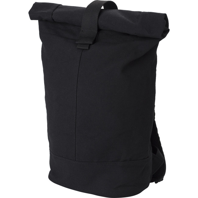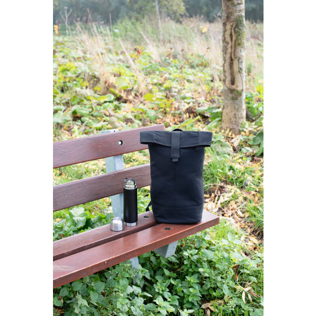 Zaino rolltop in poliestere, chiusura in velcro, tessuto da 340 grammi con rivestimento in rPET 210, retro in rete, fondo in PU rPET