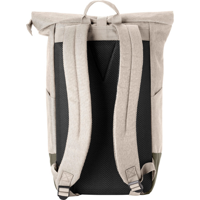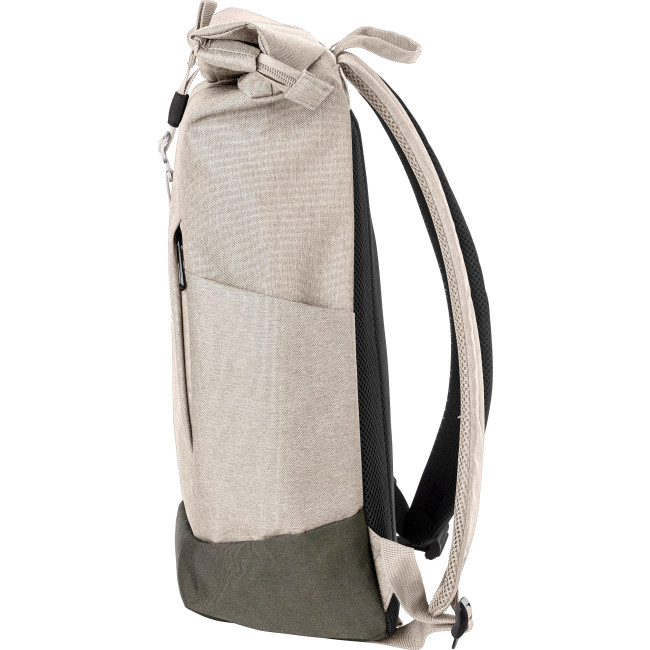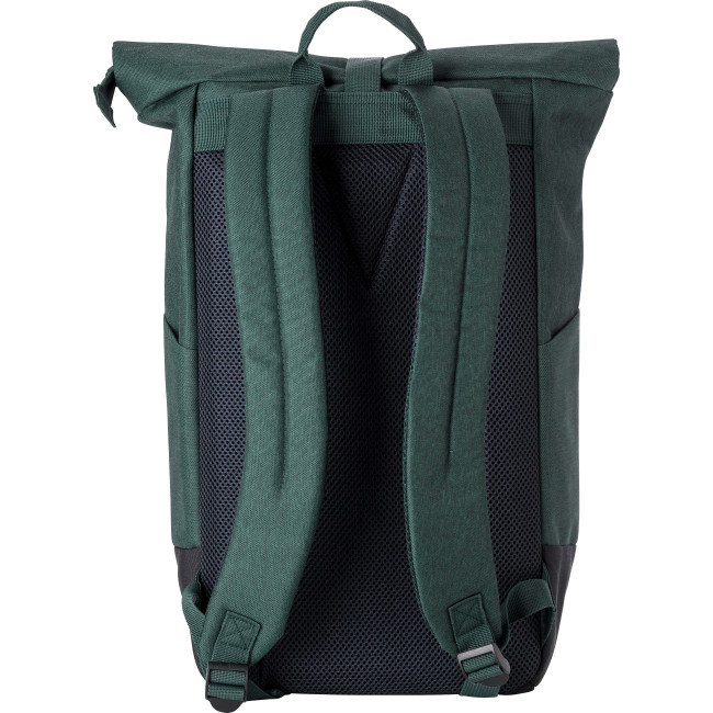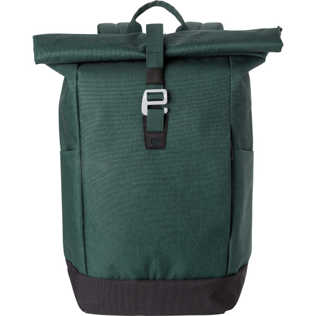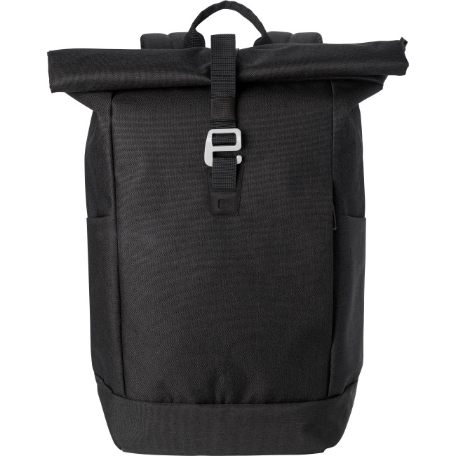 Zaino rolltop, ampio scomparto con chiusura lampo, due tasche interne, vano per laptop, tasca frontale con cerniera, schienale e spallacci imbottiti, gancio in metallo per la chiusura, in poliestere 600 D.