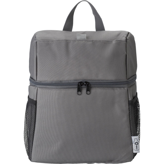Zaino termico in poliestere riciclato 300D/PU rPET, rivestimento interno in PEVA 13C, scomparto frontale con chiusura in velcro, due tasche in rete laterali, spallacci regolabili