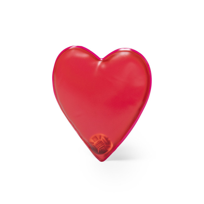 Patch termico con design a cuore. Riutilizzabile e con un effetto termico di lunga durata. Si attiva piegando la placca in modo che il patch si indurisca e si riscaldi. Per il riutilizzo, riscaldare con acqua in un contenitore fino a quando il gel interno ritorna allo stato liquido e premere uovamente la placca metallica. Manuale di istruzioni disponibile in inglese e spagnolo.