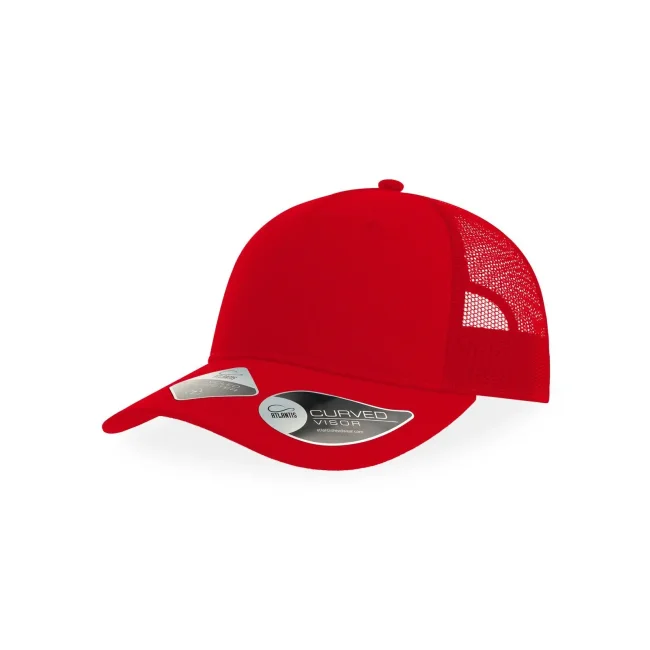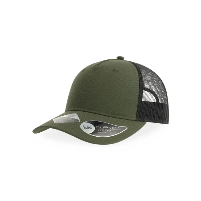 100% poliestere twill riciclato certificato. Classico modello trucker strutturato a 5 pannelli, con mesh e chiusura snapback riciclati, etichetta removibile.