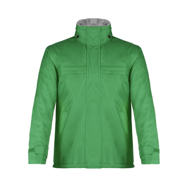 Parka con esterno in morbido, resistente e traspirante pongee ripstop con trattamento impermeabile ripstop. Design dai colori vivaci e interno foderato spesso. Colletto interno in caldo pile e doppia chiusura principale a zip: chiusura a zip con tiretto e patta in velcro. Tasche frontali e laterali con patta e chiusura a zip, polsini regolabili con velcro e vita elasticizzata con accessorio di regolazione. Disponibile nelle taglie S, M, L, XL, XXL. Con cerniera interna per facilitare la stampa.